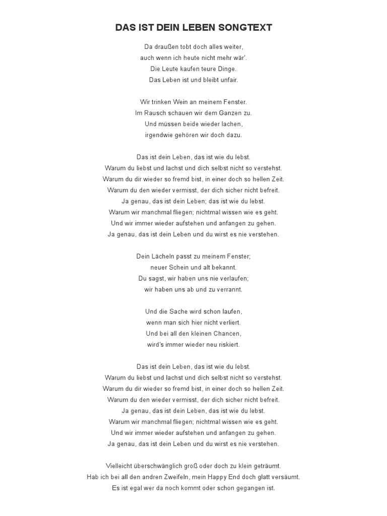 50 videos play all mix philipp dittberner das ist dein leben official video youtube heart stairway to heaven led zeppelin kennedy center honors hd duration. Warum du den wieder vermisst der dich sicher nicht befreit. Nicht mal wissen wie es geht. Am warum wir manchmal fliegen g nicht mal wissen wie es geht dm wo wir immer wieder aufstehen f und anfangen zu gehn am ja genau das ist dein leben g und du wirst es nie verstehn verse 2 c g c dein lächeln passt zu meinem fenster c g c im neuen schein und altbekannt. Böhse onkelz nichts ist für die ewigkeit song text duration. Das ist dein leben das ist wie du lebst.