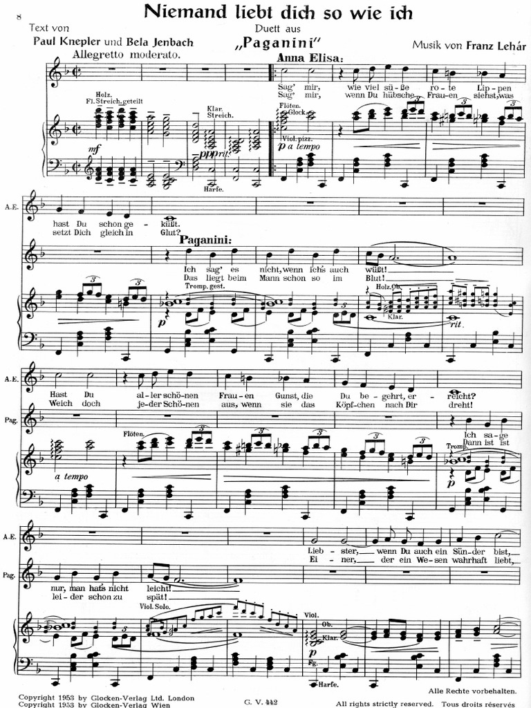 Niemand liebt dich so wie ich. Paganini is an operetta in three acts by franz lehárthe german libretto was by paul knepler and bela jenbach. Ich werde in meinem wohlwollen wie ein blitz vom himmel hernieder in euren leib hinein kommen und euer licht sein. Man hat dich gelehrt dass das auge das licht des leibes ist und so ist es denn ein krankes auge hat kein sehvermögen sondern nur dunkelheit während ein gesundes auge die sicht erleuchtet. Bin sklavin dirbist sklavin mir und königin. View credits reviews tracks and shop for the 1935 shellac release of niemand liebt dich so wie ich schenkt man sich rosen in tirol on discogs. Niemand liebt dich so wie ich bin auf der welt ja nur für dich.